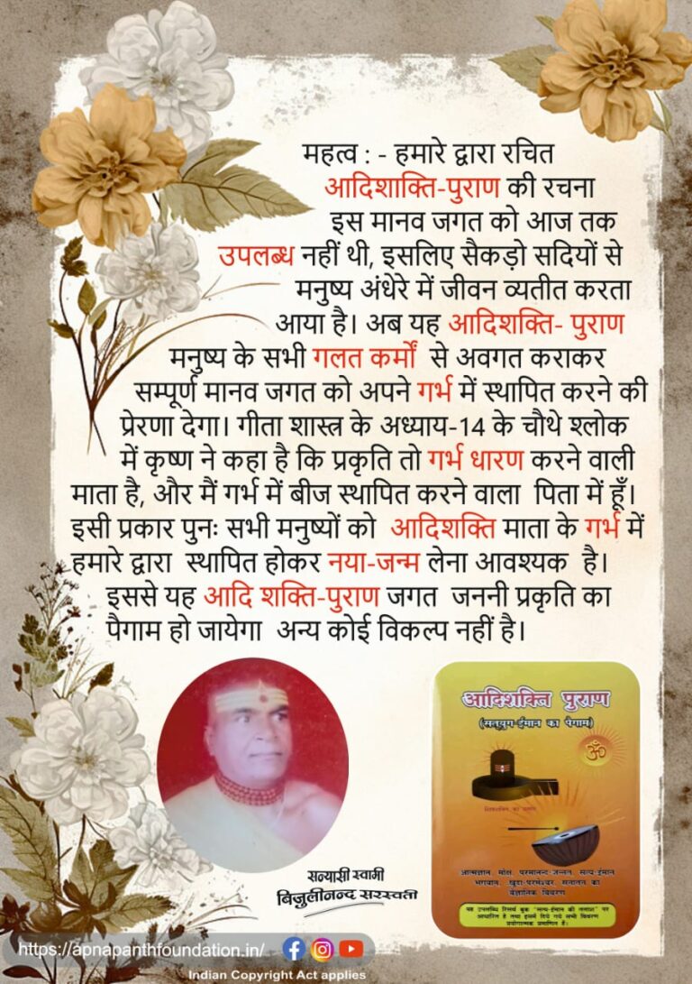 3. अगर आप रिसर्चबुक “आदि शक्ति पुराण” प्राप्त करना चाहते हैं तो पुस्तक का मूल्य 350 रुपया वी.पी. खर्च पोस्ट द्वारा नगद या चेक प्रधान कार्यालय को भेजें या नीचे दिए बैंक खाते में जमा कर हमें सूचित करें।